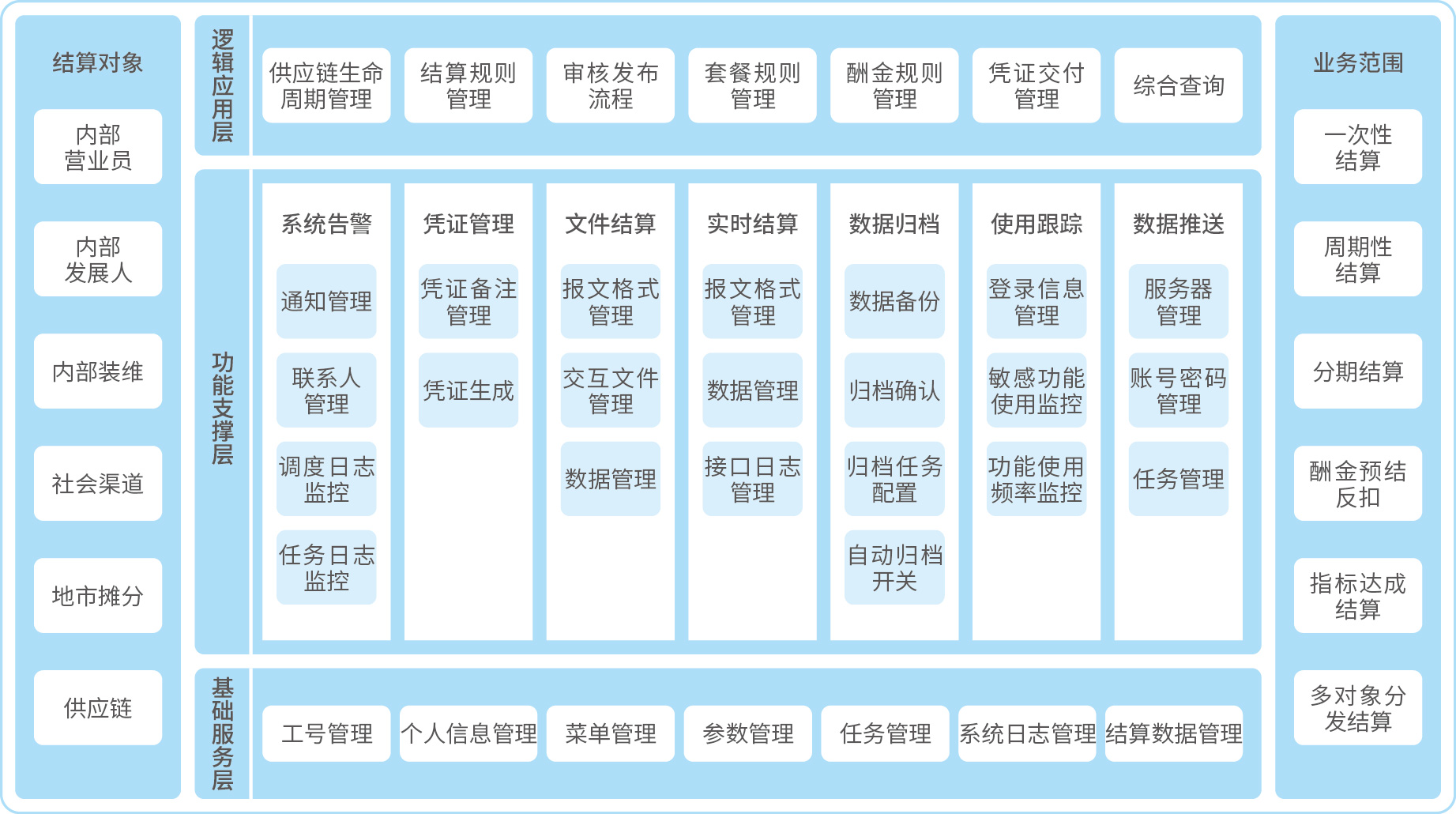 适应多业务场景:支持内部业务、第三方合作业务等多业务场景的结算,应对5G时代合作伙伴关系的复杂性。