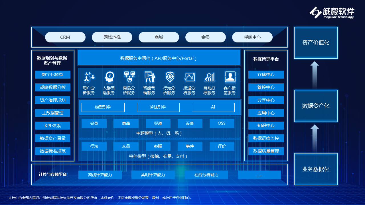 数智服务,创新未来。诚毅软件一直致力于以技术驱动数字化创新,凭借丰富的行业经验和自主开发的数智产品矩阵,帮助行业客户利用人工智能、大数据等先进技术进行数字化重塑,深化数字技术与业务融合,构建具有前瞻性业务模式,为传统产业拓展新的产业生态,帮助客户始终站在业界的前沿。